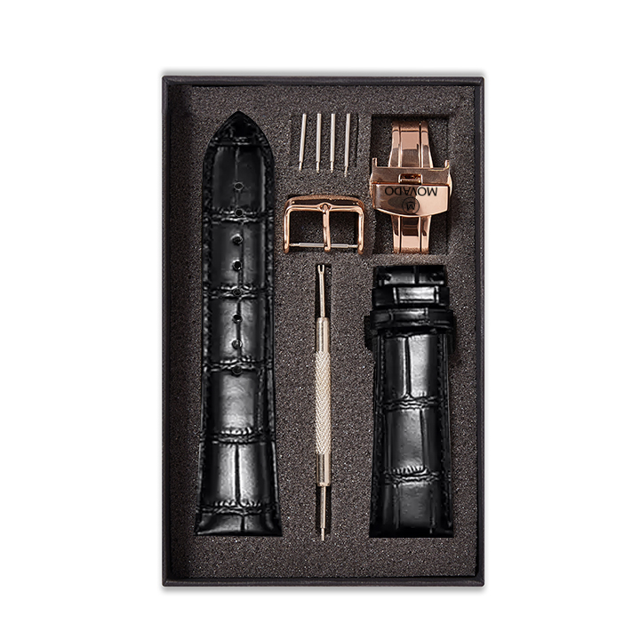 Sản phẩm Dây Đồng Hồ Da Cá Sấu Movado đầy đủ phụ kiện bao gồm: